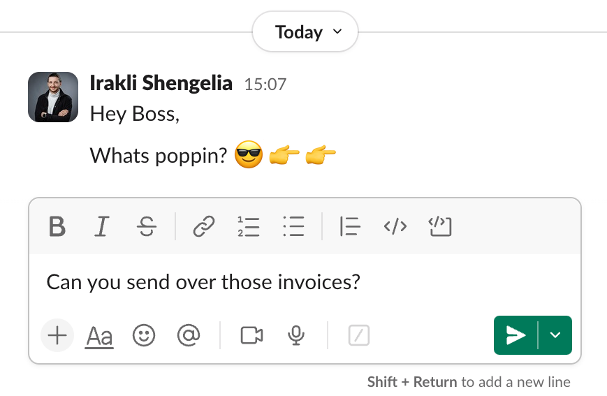 when sending messages with a big chunk of information, make sure you format it well – use paragraphs, lists, quotes, text styling bold/underline to draw attention to important details. In my experience, this speeds up the response times – which, I believe is expected – honestly, no one wants to read your 2000 word paragraph in all lowercase.